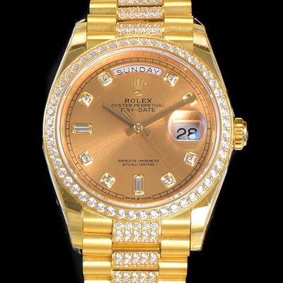 Rolex Day-Date Automatic Cal.3235 TYPE 36mm Mens 18K All Yellow Gold Diamond Gold Dial