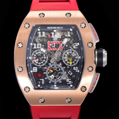 • 레플리카 [리차드밀레] 남성용 RM11 크로노그래프 오토매틱 18K 로즈골드 50미리 스켈래톤 블랙다이얼 RIC08718