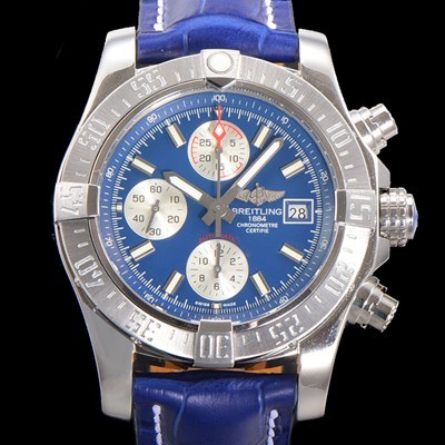 레플리카 [브라이틀링] 남성용 어벤져 크로노그래프 ETA 7750-2 타입 45mm 가죽줄 블루다이얼 bre6448