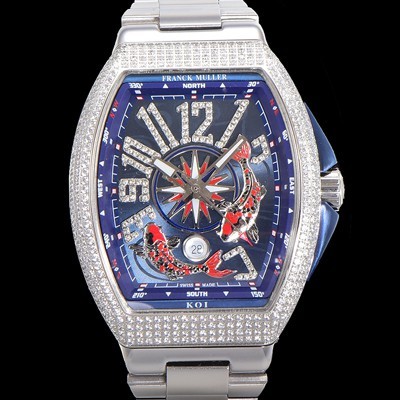 레플리카 [프랭크뮬러] 남성용 1:1수제공정 풀 다이아셋팅 뱅가드 오토매틱 ETA2824 타입 45mm 메탈줄 블루다이얼 fra6062