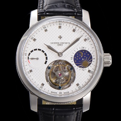 • 레플리카 [바쉐런콘스탄틴] 남성용 트레디셔널 투어빌론 오토매틱 문페이즈 44mm 가죽줄 화이트다이얼 vac07216