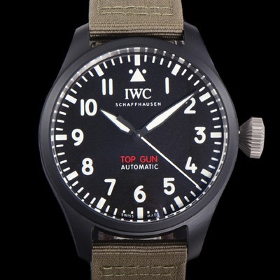 IWC Men's Pilot Automatic 43.8mm Ceramic Material NATO Cloth/Leather Strap Mix Black Dial