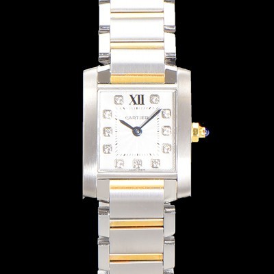 Cartier Women's Tank "Française Watch!!" Diamond S model, yellow gold steel silver flanque dial Swiss quartz movement
