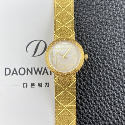• 레플리카 [디올] 여성용 라디드 사틴 25mm 18K 옐루골드 쿼츠 무브먼트 화이트 자게 다이얼 dio1002