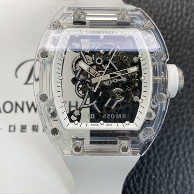 레플리카 [리차드밀레] 남성용 RM055 트랜스파랜트 50mm 미네랄 크리스탈 기계식 수동형 무브먼트 화이트 스켈레톤 다이얼 ric0326 요약정보 및 구매