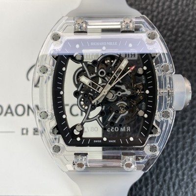 • 레플리카 [리차드밀레] 남성용 RM055 트랜스파랜트 50mm 미네랄 크리스탈 기계식 수동형 무브먼트 블랙 스켈레톤 다이얼 ric0329