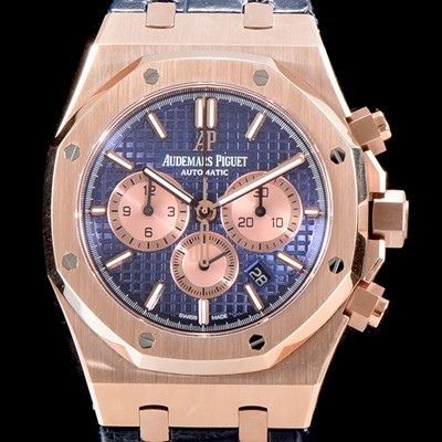 Audemars Piguet Royal Oak Chronograph 18k Rose Gold Navy Waffle Dial Automatic Movement