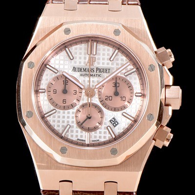 Audemars Piguet Royal Oak Chronograph 18k Rose Gold Silver Waffle Dial Automatic Movement