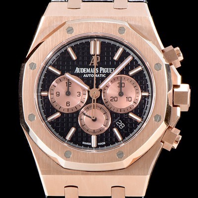레플리카 [오데마피게] 남성용 NEW 로얄오크 26320OR.OO.1220OR.01 18K 로즈골드 41mm 사이즈 드레스 워치!! 크로노그래프 블랙 와플 다이얼 브레이슬릿 신형 ETA 7750B-2 오토매틱 무브먼트 AUD0120