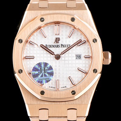 Audemars Piguet Royal Oak 18k Rose Gold White Waffle Dial Bracelet Quartz Movement