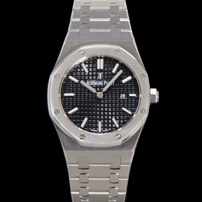 Audemars Piguet Women's Royal Oak Bracelet 33mm Quartz Movement Black Waffle Dial