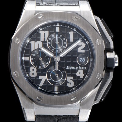 레플리카 [오데마피게] 남성용 로얄오크 오프쇼어 26378IO.OO.A001KE.01 아놀드 리미티드 에디션 크로노그래프 블랙 와플 다이얼 스위스 쿼츠 무브먼트 AUD0104