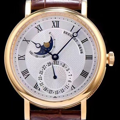 Breguet Classique Men's Watch 18k Yellow Gold Case Moonphase White Texture Dial Automatic Movement