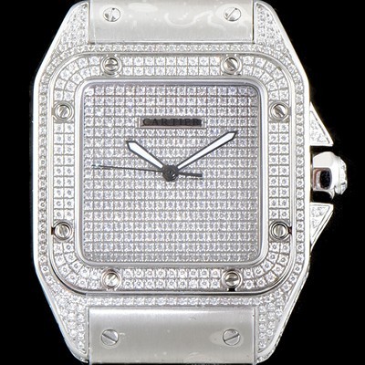 레플리카 [까르띠에] 남성용 산토스 100 베스트 에디션 W20073X8 미듐 모델 화이트 골드 풀다이아몬드 셋팅 오토매틱 무브먼트 CAR4010