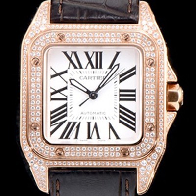 • 레플리카 [까르띠에] 남여공용 산토스 100 MM 로즈골드 다이아몬드 화이트 다이얼 CAR0130