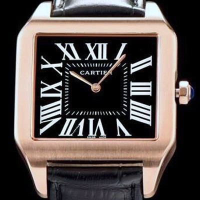 레플리카 [까르띠에] 남여공용 산토스 시리즈 9015 무브먼트 로즈골드 베젤 블랙 다이얼 CAR0014