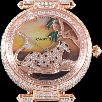 • 레플리카 [까르띠에] 남성용 팬더 오 끌레르 드 륀 드 까르띠에 HPI00712 18K 로즈골드 하이 쥬얼 세팅 픽첼 다이얼 스위스 쿼츠 무브먼 CAR0011