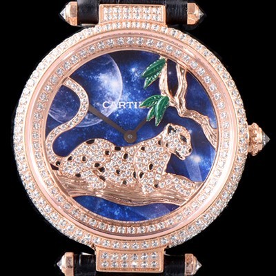• 레플리카 [까르띠에] 남성용 팬더 오 끌레르 드 륀 드 까르띠에 HPI00712 18K 로즈골드 하이 쥬얼 세팅 픽첼 다이얼 스위스 쿼츠 무브먼 CAR0012