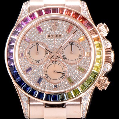 레플리카 [로렉스] 남성용 신형 데이토나!! 코스모그래프 "레인보우" 무지개 컬러 바게크 컷 사파이어 36개 세팅 베젤 다이아몬드-핑크자게 다이얼 오이스터 브레이슬릿 7750B-2 오토매틱 무브먼트 ROL0510 요약정보 및 구매