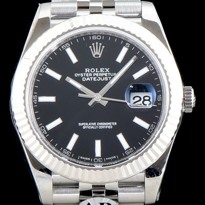 Rolex Oyster Perpetual DATE-JUST Oyster Fluted Bezel Black Dial Jubilee Bracelet SWISS ETA 2836-2 Automatic Movement