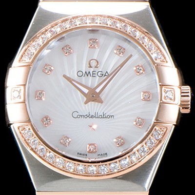 • 레플리카 [오메가] 여성 컬렉션 컨스틀레이션 123.25.27.60.55.002 오메가 코-액시얼 27MM 다이아몬드 세팅 베젤 화이트 자개 다이얼 18K 로즈골드 콤비 쿼츠 무브먼트 OMG0120