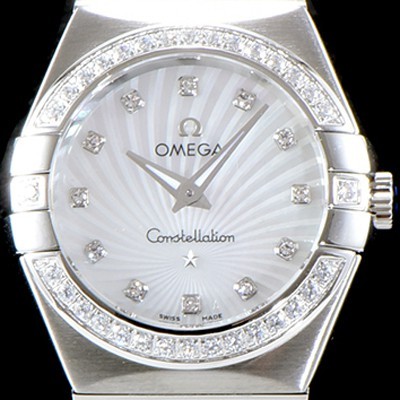 레플리카 [오메가] 여성 컬렉션 컨스틀레이션 123.15.27.20.55.001 오메가 코-액시얼 27MM 다이아몬드 세팅 베젤 화이트 자개 다이얼 쿼츠 무브먼트 OMG0120