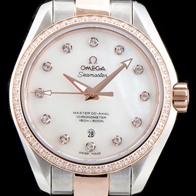 • 레플리카 [오메가] 여성용 씨마스터 "우아함의 정수" 220.25.38.20.55.001 아쿠아 테라 코-액시얼 크로노미터 화이트 자개 다이얼 18K 로즈골드 투톤콤비 오토매틱 무브먼트 OMG0103