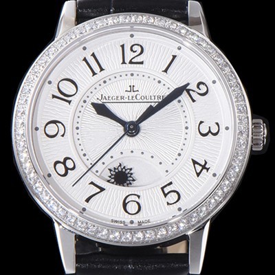 • 레플리카 [예거르꿀르뜨] 남성용 랑데부 나잇&데이 3468421 레이디 워치 최상급 다이아몬드 세팅 베젤 문페이즈 화이트 텍스쳐드 다이얼 오토매틱 무브먼트 JAG0445