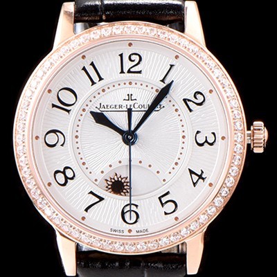 레플리카 [예거르꿀르뜨] 남성용 랑데부 나잇&데이 Q3442520 레이디 워치 18K 로즈골드 최상급 다이아몬드 세팅 베젤 문페이즈 화이트 텍스쳐드 다이얼 오토매틱 무브먼트 JAG0440