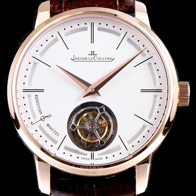 레플리카 [예거르쿨트르] 남성용 마스터 울트라 씬 1313520 미닛 리피터 플라잉 투르비옹 18K 로즈골드 화이트 다이얼 아시안 투어빌론 탑재 무브먼트 JAG0410