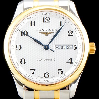 레플리카 [론진] 남성용 마스터 컬렉션 L2.755.5.78.7 클래식 데이데이트 논크로노 모델!! 18K 옐로우골드 투톤콤비 화이트 텍스쳐드 다이얼 브레이슬릿 오토메틱 무브먼트 LON0400