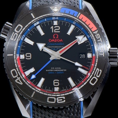 • 레플리카 [오메가] 남성용 New "ETNZ" 딥 블랙 UP!! 시마스터 215.92.46.22.01.004 뉴질랜드 깃발을 상징하는 블루와 레드 플래닛 오션600M 코-액시얼 마스터 크로노미터GMT 45.5MM 블랙 다이얼 오토매틱 무브먼트 OMG0513