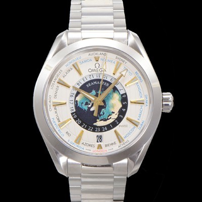 Omega Men's Seamaster Aqua Terra 150M GMT Worldtimer 43mm Automatic Cal. 8938 Type Metal Strap Silver Dial