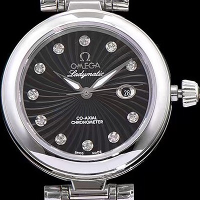 레플리카 [오메가] 여성용 드빌 레이디메틱 신제품!! 425.30.34.20.51.001 물결무늬 입체형 블랙 다이얼 쥬얼 다이아몬드 인덱스 브레이슬릿 오토매틱 무브먼트 OMG0035
