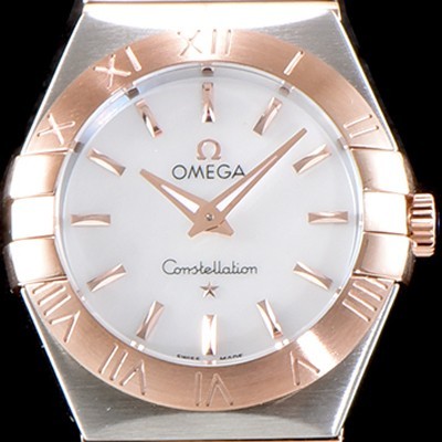 • 레플리카 [오메가] 남성용 여성 컬렉션 컨스틀레이션 123.20.24.60.05.001 오메가 코-액시얼 27MM 로마 숫자가 인그레이빙된 베젤 18K 로즈골드 콤비 화이트 자개 다이얼 쿼츠 무브먼트 OMG4123