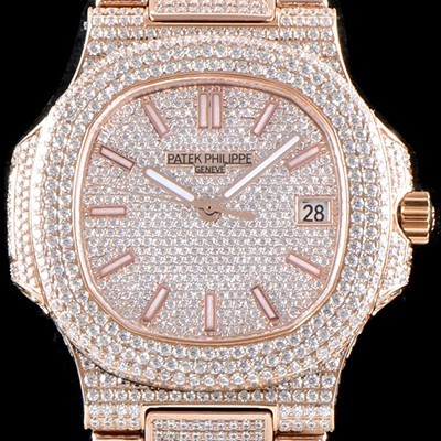 Patek Philippe TOP Grade Quality Nautilus Jumbo 18k Rose Gold Full Diamond Set Case Bracelet Automatic Movement