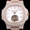 Patek Philippe Nautilus Jumbo TOP Grade Quality 18k Rose Gold Full Diamond Set Case White Texture Dial Asian Tourbillon Hand-Winding Movement
