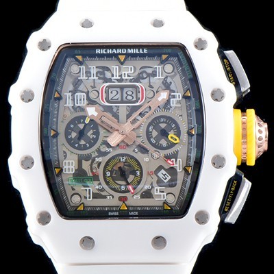 • 레플리카 [리차드밀레] 남성용 최신버전 업그레이드형 RM011 화이트 세라믹 오버사이즈 데이트 크로노그래프 스켈레톤 다이얼 오토매틱 무브먼트 RIC0411