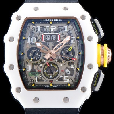 • 레플리카 [리차드밀레] 남성용 최신버전 업그레이드형 RM011 화이트 세라믹 오버사이즈 데이트 크로노그래프 스켈레톤 다이얼 오토매틱 무브먼트 RIC0412
