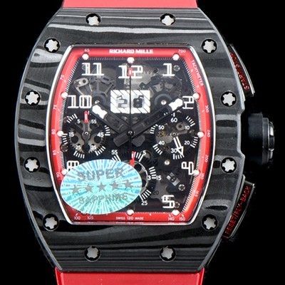 • 레플리카 [리차드밀레] 남성용 리차드밀레 RM011 100% 포지드 카본 케이스 스켈레톤 다이얼 신형 SHANGHAI ETA 7750B-2 크로노그래 오토매틱 무브먼트 RIC0410