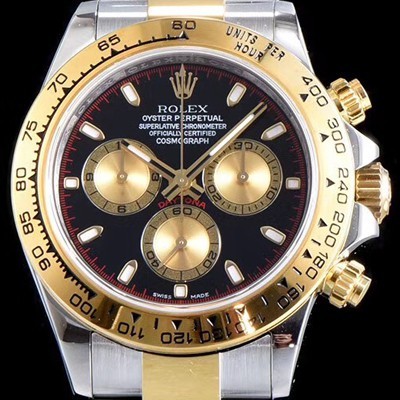 • 레플리카 [로렉스] 남성용 신형 데이토나 모델 업데이트!! 크로노그래프 18k 옐로골드 투톤 콤비 블랙 다이얼 야광 인덱스 오토매틱 무브먼트 ROL0312