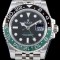 2018년에 선보인 GMT-마스터II GMT-MasterII는 오이스터스틸Oystersteel 소재로 제작되었습니다.이 버전은 오이스터스틸 소재의 5열링크 쥬빌리Jubilee 브레슬릿을 갖추고 있습니다.쥬빌리 브레슬릿,오이스터스틸,블랙와 그린 세라믹 소재의 투톤 세라크롬Cerachrom 인서트가 처음으로 모두 함께 GMT-마스터II에 적용되었습니다.