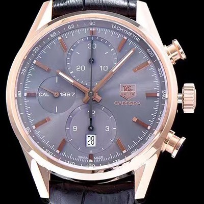 • 레플리카 [태그호이어] 남성용 까레라 칼리버 1887 크로노그래프 로즈골드 그레이 다이얼 오토매틱 무브먼트 TAG0230