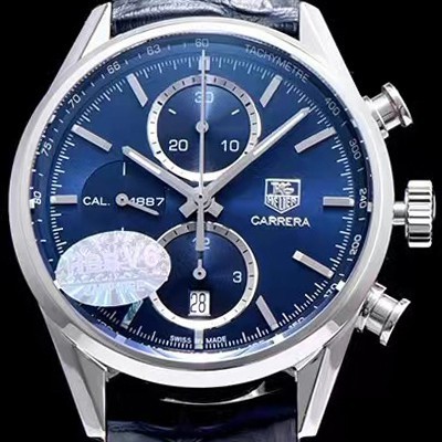 레플리카 [태그호이어] 남성용 까레라 칼리버 1887 크로노그래프 블루 다이얼 7750 오토매틱 TAG0202