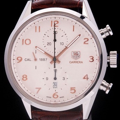 레플리카 [태그호이어] 남성용 까레라 칼리버 1887 크로노그래프 화이트 다이얼 7750 오토매틱 TAG4212