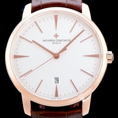 Vacheron Constantin Grand Taille Strap Patrimony Self-Winding Date 18k RoseGold Case White Dial Automatic Movement
