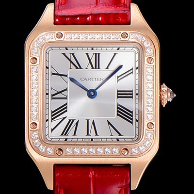 Cartier Santos-Dumont Watch Ladies Womens Quartz 38mm 18K RoseGold Diamont Silver Dial