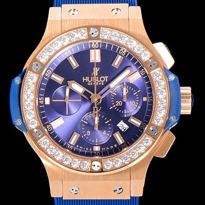 • 레플리카 [휴블렛]남성용 빅뱅 크로노그래프 44미리 18K로즈골드 다이아몬드우레탄 오토매틱 블루다이얼 HUB47473