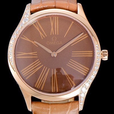 • 레플리카 [오메가]여성용 드빌 트레저 금장 다이아몬드 36미리 쿼츠 브라운다이얼 OMG56497