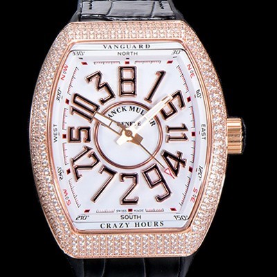 • 레플리카 [프랭크뮬러] 남성용 뱅가드 오토매틱 CZ02타입 44미리 18K로즈골드/보석/큐빅 셋팅 가죽줄/스트랩 화이트다이얼 FRA73777
